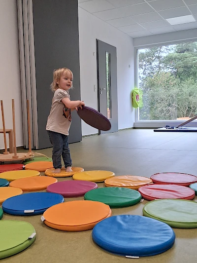 Wir haben am 01.08.2025 unsere neue Kita eröffnet. Sie verfügt auch über einen Bewegungsraum. Bewegung ist für alle Altersbereiche in Krippe und Kindergarten entscheidend für die körperliche, geistige und soziale Entwicklung. Kinder entdecken die Fähigkeit ihres eigenen Körpers, entwickeln durch Bewegung ihre Koordination, Geschicklichkeit und Kraft. Mit jedem Erfolgserlebnis wird das Selbstbewusstsein gestärkt. Kinder treten beim spielerischen Bewegen mit anderen in Kontakt und teilen meist ein gemeinschaftliches Erlebnis und viel Freude. Gleichzeitig stärkt die regelmäßige Bewegung das Immunsystem. Für die weitere Entwicklung eines Kindergartenkindes fördert Bewegung auch die Lernbereitschaft und die Konzentrationsfähigkeit im Hinblick auf den Schulbesuch. Da wir bisher nur eine Grundausstattung haben, würden wir uns sehr über einen Zuschuss für die weitere Ausstattung des Bewegungsraums freuen.