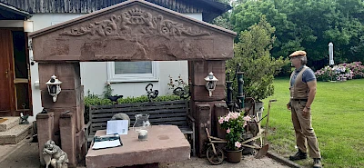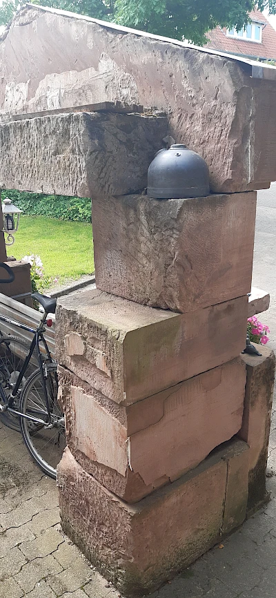 Nun wurde uns das Eingangsportal des ehemaligen Bürgermeisteramtes angeboten. Das Haus mit Nummer 72 gehörte Bürgermeister i.R. Stichtenoth. Über dem Giebel die Jahreszahl -1909-. Ein in Sandstein gearbeitetes Portal liegt vor einer Hausnische. Auf seinen Säulen ruht ein breiter Sandstein, der in seinem oeren Teil an beiden Seiten abgeschrägt ist und eine wertvolle Bildhauer-Arbeit zeigt. Es ist das Wappen des Flecken Nörtens: Zwei aufrechtstehende Löwen halten einen Krengel. Darüber befindet sich eine Krone. Reiches Rankenwerk umgibt das gut stilisierte Wappen. Das Portal wurde uns angeboten und muss dringend restauriert werden, um es der Öffentlichkeit zur Verfügung zu stellen und ein Teil der Geschichte von Nörten-Hardenberg wieder lebendig zu machen. Hierfür bitten wir um Unterstützung.